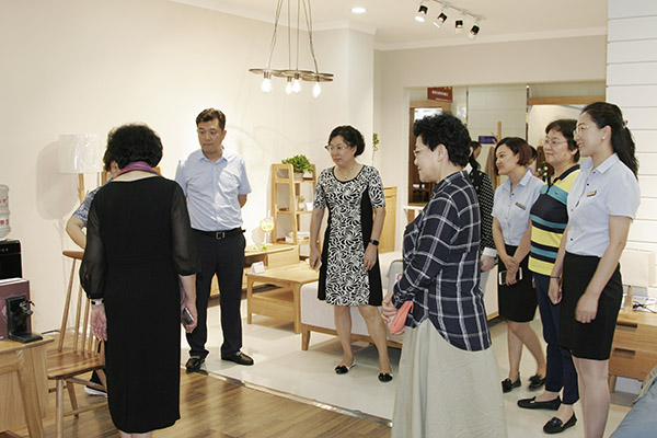 總經(jīng)理?xiàng)钹愅夼c女企業(yè)家們走進(jìn)藍(lán)天商貿(mào)辦公室