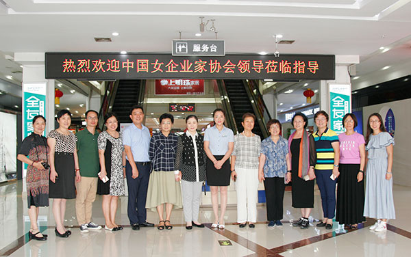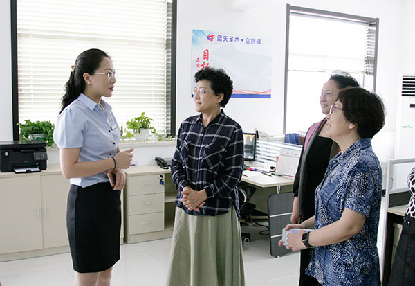 總經(jīng)理?xiàng)钹愅夼c女企業(yè)家們走進(jìn)藍(lán)天商貿(mào)辦公室